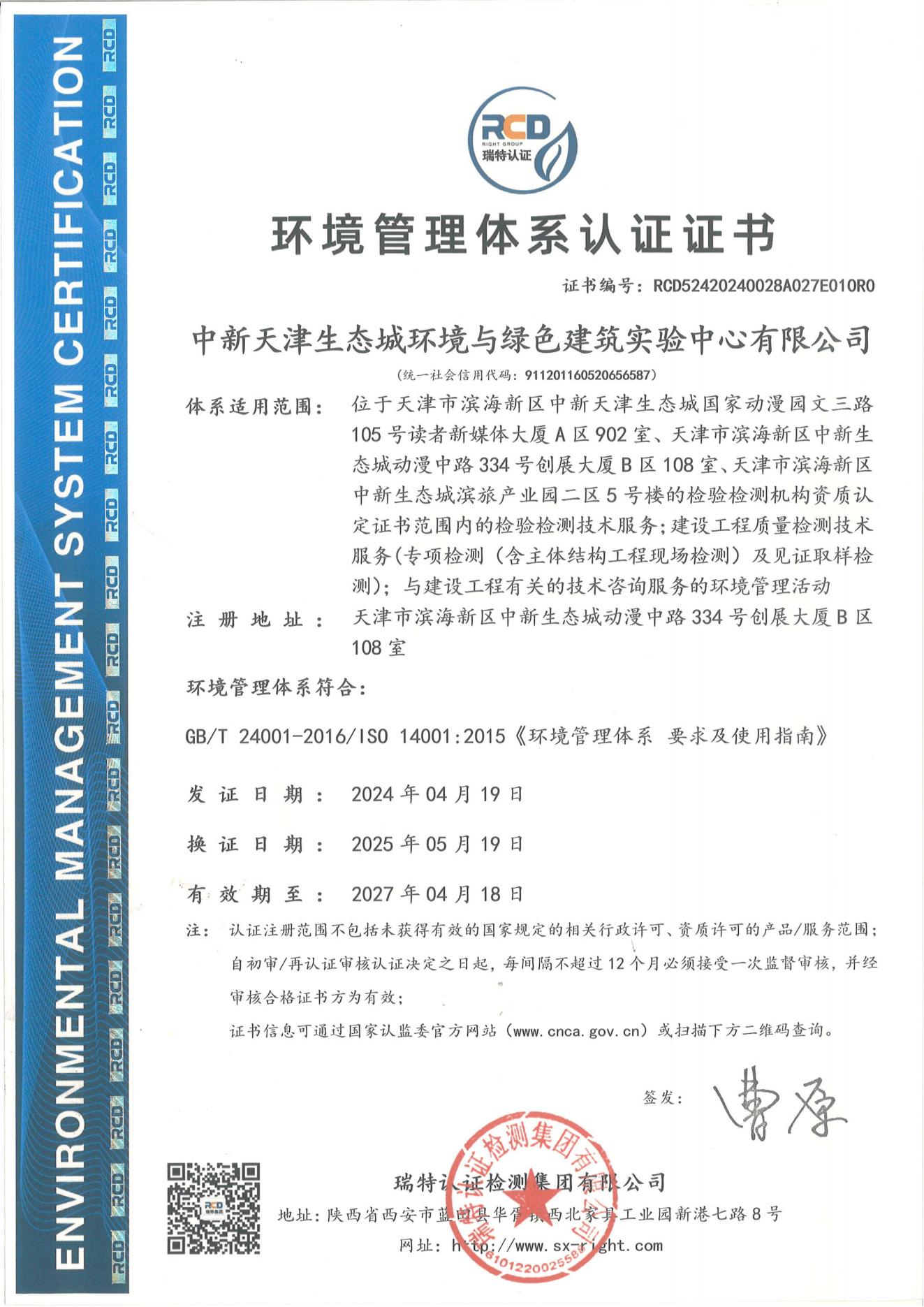 中新天津生態城環境與綠色建筑實驗中心有限公司