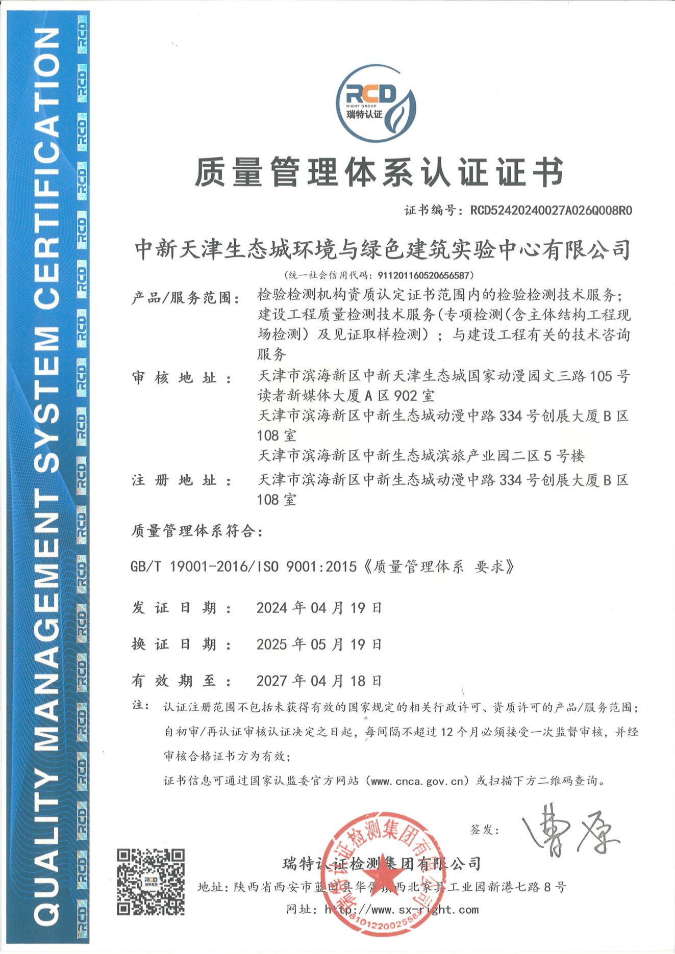 公司發展至今,技術能力不斷拓展和提升。現已具備檢驗檢測機構資質(簡稱CMA)、天津市建設工程質量檢測機構資質、中國合格評定國家認可委員會實驗室認可資質(簡稱CNAS)等資質。同時,公司已被認定為高新技術企業、天津市專精特新中小企業、濱海新區首家近零能耗建筑第三方測評機構。公司主要從事建筑材料及構配件、主體結構及裝飾裝修、建筑節能、道路工程等檢驗檢測服務,以及綠色建筑節能評估、近零能耗、房屋質量安全鑒定等咨詢服務業務。公司在冊員工為60人,其中高級職稱30名,中級職稱20名,初級職稱10名。